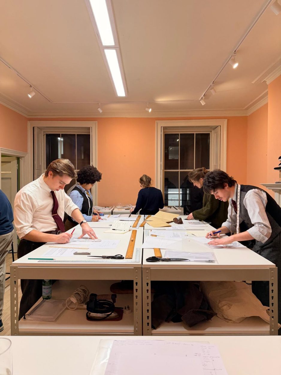 Ten students are enrolled on the January 2026 course, which is fully subscribed. The group reflects the international reach of Savile Row, with one student travelling from Brazil and another commuting from Rugby in the Midlands. All are taking their first steps towards a career in bespoke tailoring by learning the core skills required for future cutting, coat-making and trouser-making apprenticeships at Savile Row Bespoke Association (SRBA) members and other tailoring houses.